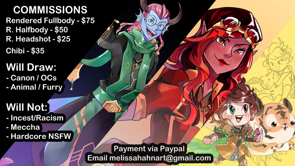 Find all my informaton about commissions here! Please email me at [email protected] for a commission!